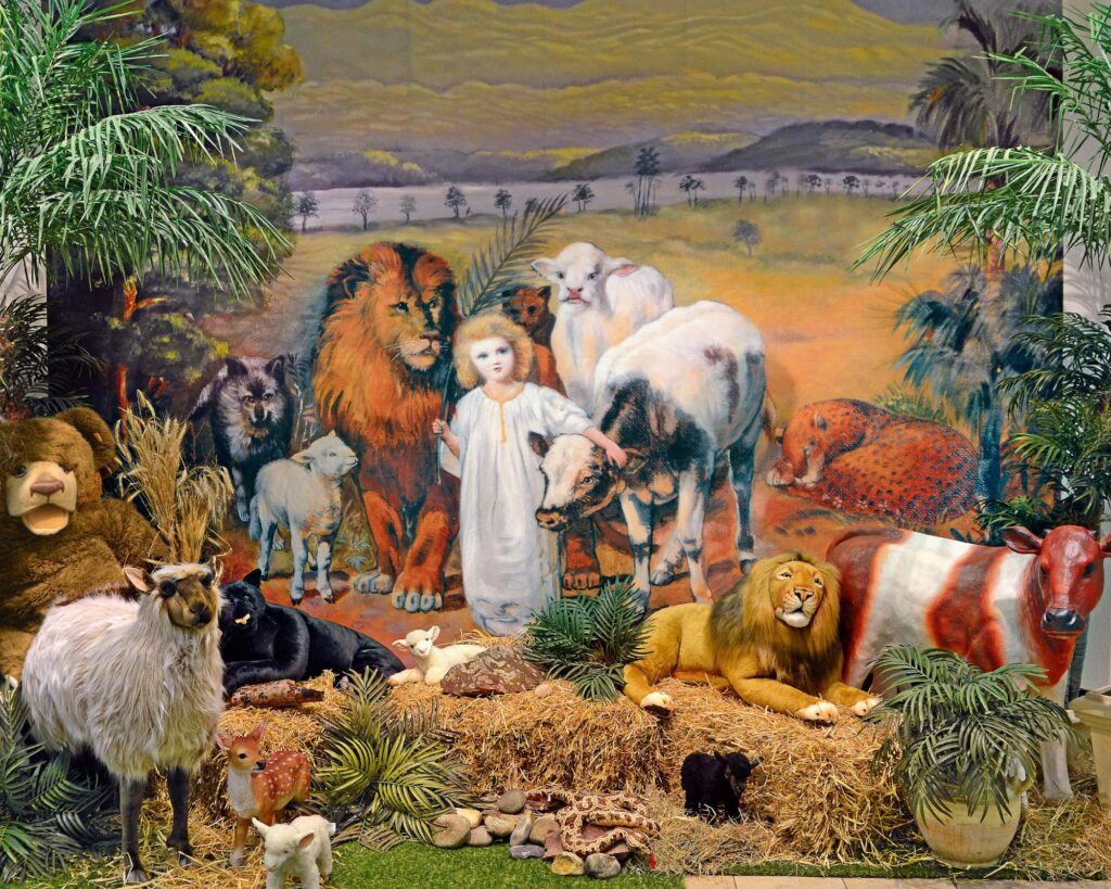 V Kraljestvu miru Jezusa Kristusa se bo izpolnilo, kar je Bog napovedal prek preroka Izaije: Tedaj bo volk prebival z jagnjetom, panter bo ležal s kozličkom. Tele in lev bosta skupaj, majhen deček jih bo lahko vodil. Krava in medvedka se bosta skupaj pasli, njuni mladiči bodo skupaj ležali. Lev bo jedel seno kakor govedo. Dojenček se bo igral nad gadjo luknjo. V modrasovo votlino bo mali otrok vtikal svojo roko. Nič hudega več ne bodo storili, nič pogubnega naredili na vsej Moji sveti gori, zakaj dežela je polna spoznanja Gospodovega, kakor vode pokrivajo morsko globino. ...